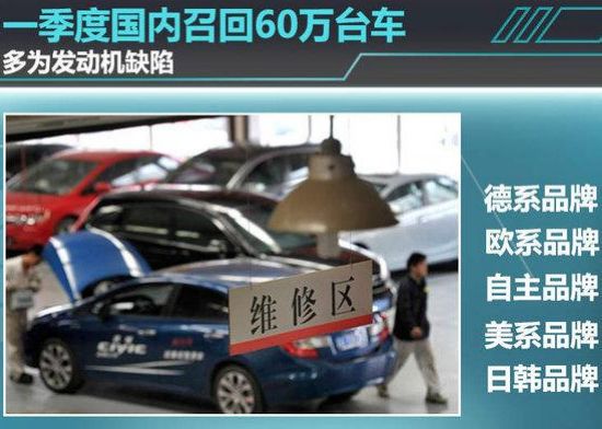 回总量的9成。其中德系共涉及204,546台,占召回总量的34.6%。欧系1季度在华召回共计163,924台,占召回总数的28.1%。而自主在华